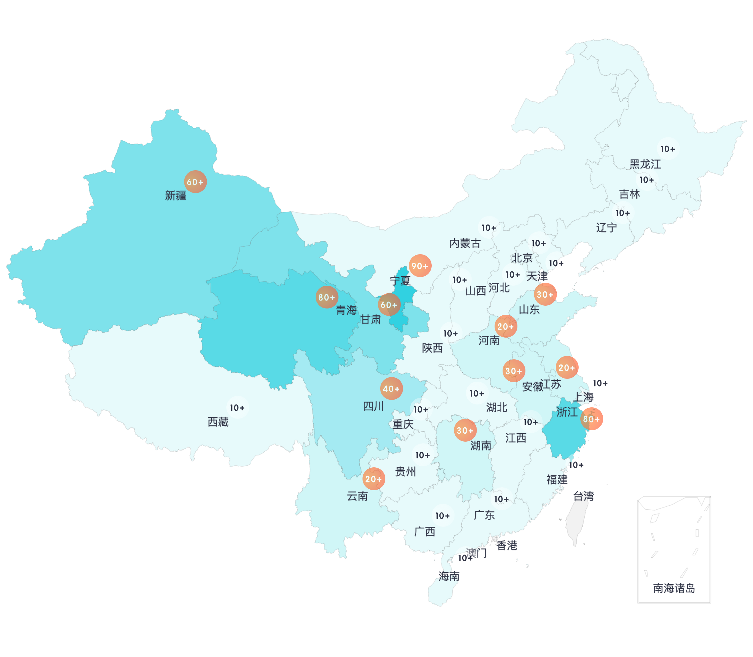 已实现700+景区、区县、电子围栏监测及输出,覆盖全国31个省及直辖市